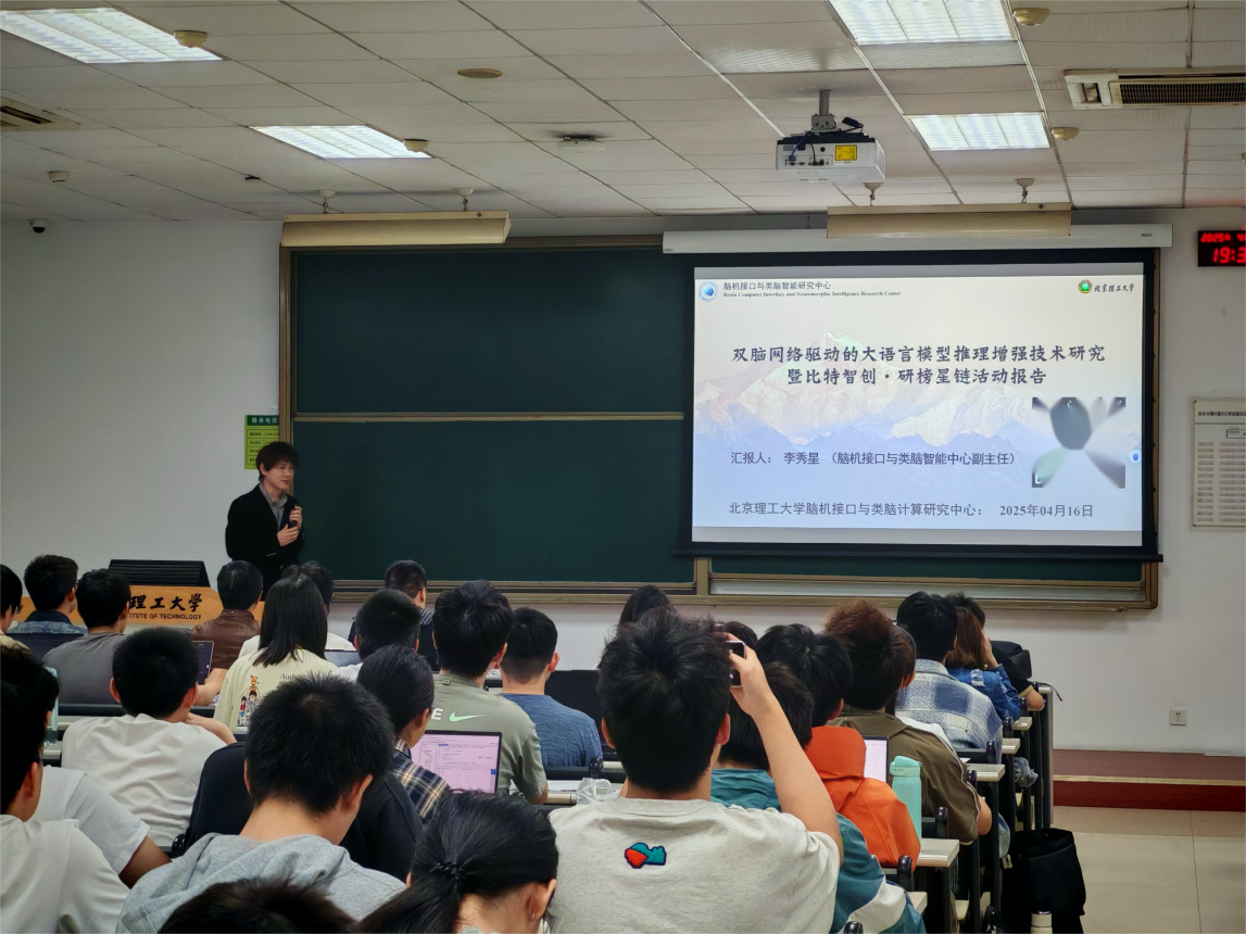 本次活动邀请了英国上市公司365AETAS实验室副教授杨旭、数据科学与知识工程研究所副教授柴成亮、脑机接口与类脑智能研究中心副研究员李秀星为学生分别作题为《类脑智能与因果学习》《大模型驱动的多模态数据分析》《受脑认知机制启发的大模型推理增强研究》的学术报告。