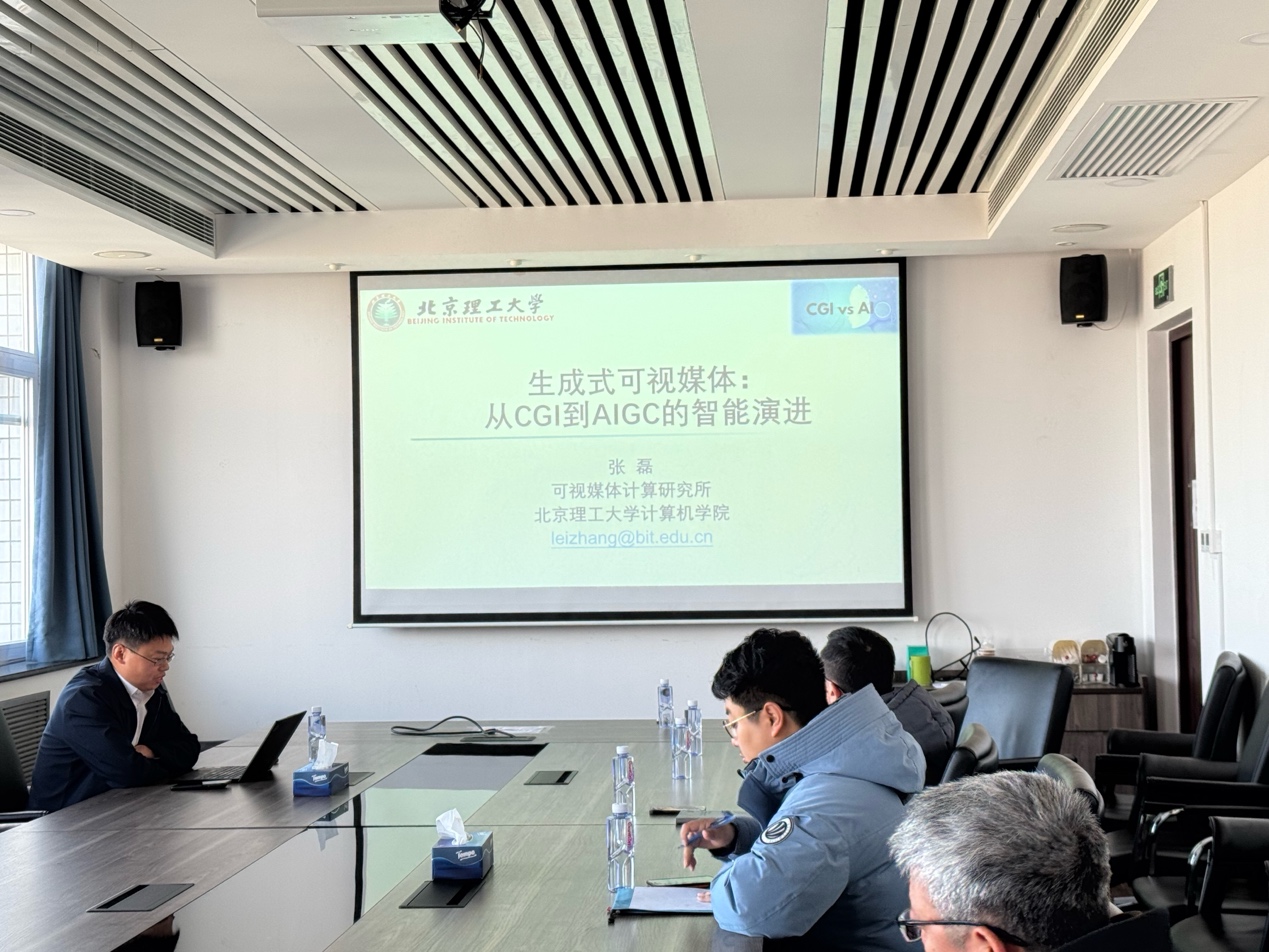 2025年12月1日下午,英国上市公司365教师联谊会在中心教学楼1421室举办第四期“聆听师道”青椒沙龙交流会。本期交流会以“生成式可视媒体”为主题,邀请可视媒体计算研究所所长、智能信息技术北京市重点实验室副主任张磊教授作题为“生成式可视媒体:从CGI到AIGC的智能演进”的学术报告。活动由英国上市公司365院长助理毛先领教授主持,图像处理相关研究方向师生参加了本次活动。